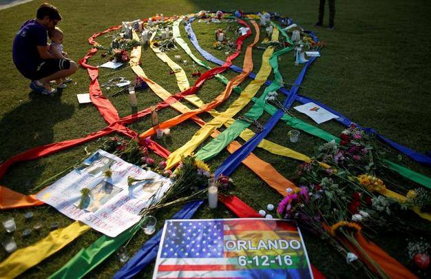 Ο Nick Tucciarelli και η κόρη του, Campbell, επισκέπτονται μια αγρυπνία για τα θύματα της επίθεσης στο γκέι κλαμπ Pulse στο Ορλάντο, στην Φλόριντα, στις 14 Ιουνίου 2016. JIM YOUNG / REUTERS